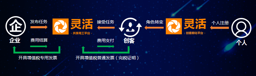 平台 + 园区,构建完整的互联网灵活用工生态链,服务新个体经济,实现产业聚集。
